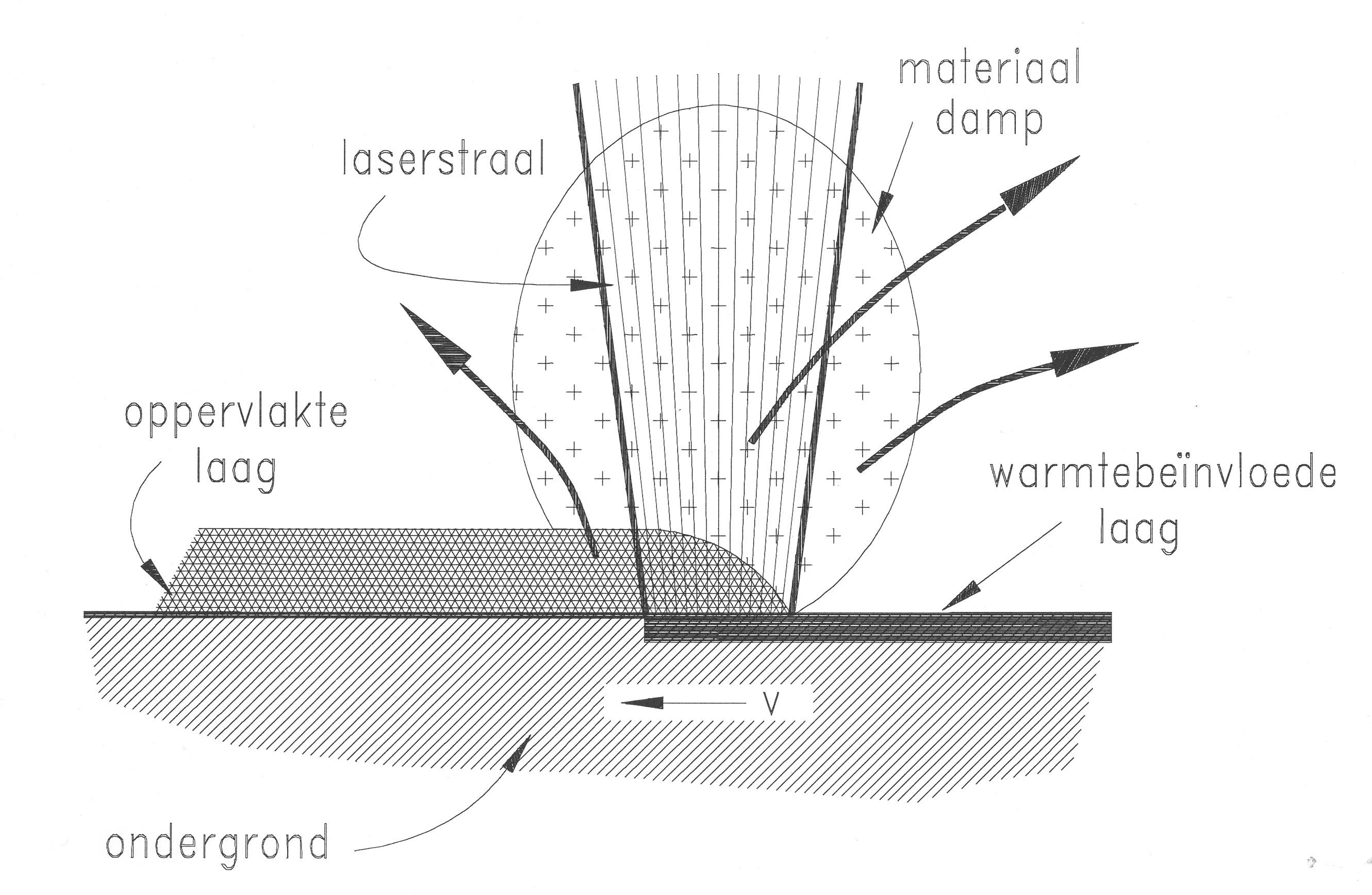 waarin het oppervlak de energie van de laser opneemt, geleidt ofwel kan
